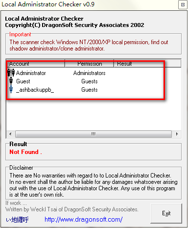 Local Administrator Checker下载 v0.9绿色版-克隆账户检测软件