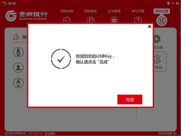 1.您已完成安全控件、USBKey驱动程序的安装。重新插入USBKey后,应能自动弹出贵州银行网站。