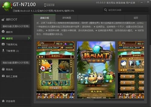 除了解决ROOT需求,和能刷海量的ROM外,用电脑版绿豆刷机神器连接手机,还可以轻松安装一些免费的小游戏,全免费的游戏哦。