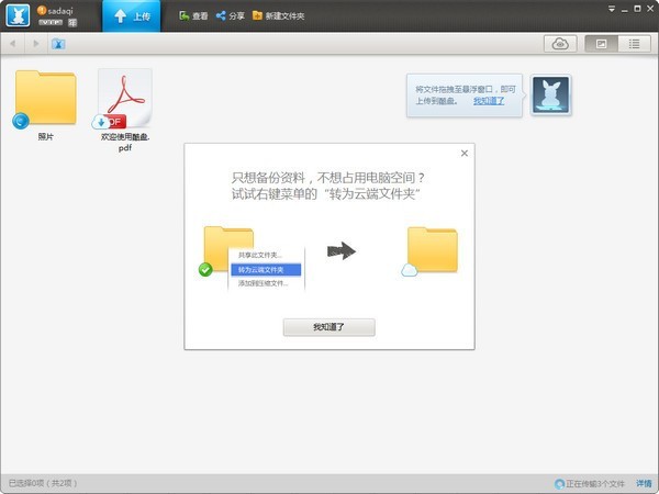 3. 结束! (*^__^*) 酷盘会自动将酷盘同步目录里的文件统统同步至酷盘服务器。