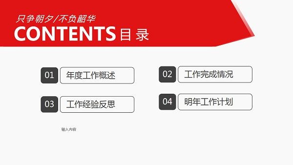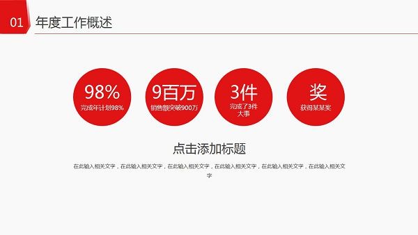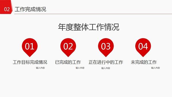 年终总结汇报工作计划PPT模板-红色年终总结汇报工作计划PPT模板下载 免费版 软件下载 5 月 14, 2023 0 king 红色年终总结汇报工作计划ppt模板是一款年终总结、工作计划、工作汇报ppt制作模板,红色年终总结汇报工作计划PPT模板由PC6为您分享免费下载,更多免费PPT模板请关注PC6模板网。 模板内容 1、年度工作概述 2、工作完成情况 3、工作经验反思 4、明年工作计划 模板预览 下载仅供下载体验和测试学习,不得商用和正当使用。 下载体验 请输入密码查看下载! 如何免费获取密码? 点击下载