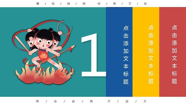 卡通哪吒闹海主题PPT模板-卡通哪吒闹海主题PPT模板下载 免费版