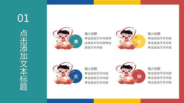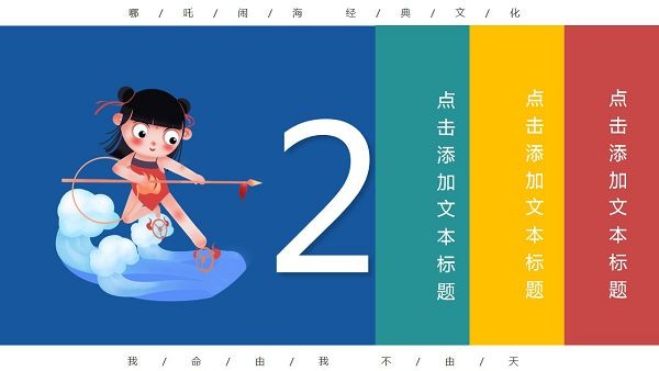PowerPoint模板内容页,知识兔使用了多张哪吒插图,搭配PPT文字排版。