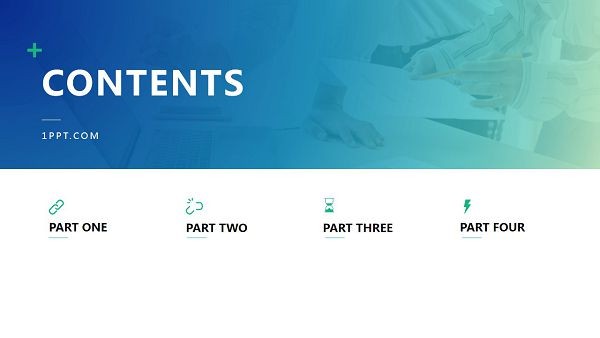 PowerPoint模板内容页,由23张蓝色渐变英文幻灯片图表,搭配PPT文字排版。另外使用了欧美职场人物插图、握手插图、数据报表插图等装饰。
