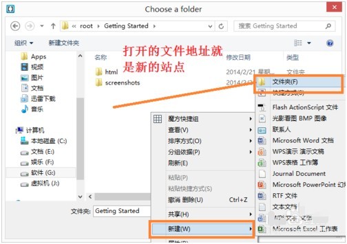 左键知识兔点击文件夹的名字,就可以打开Open Folder,知识兔就可选择或者新建一个文件夹作为网站站点。