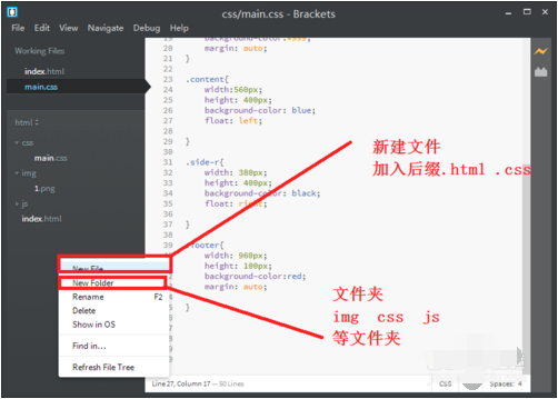 接下来就是文件的新建,和编写了。只要你添加好了后缀,当你进行编写web的时候,他就自动关键字补全,很方便的。
