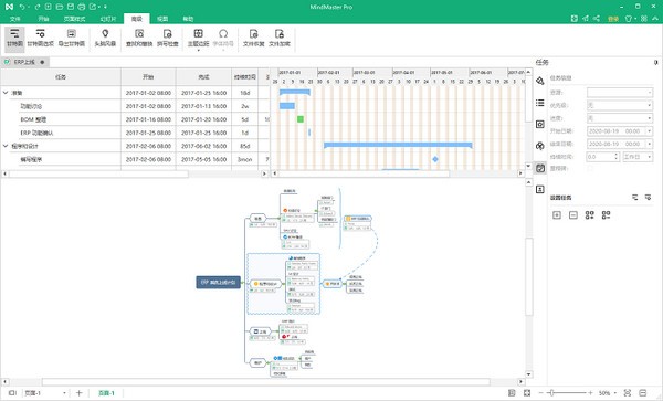 使用MindMaster进行项目管理时,可轻松将视图切换到甘特图模式进行项目管理。同时还可以在甘特图模式中直接添加新任务、修改任务名称、任务进度、里程碑和任务联系等。
