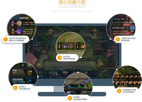 1.实时显示您当前可合成推荐出C位英雄配搭装备。