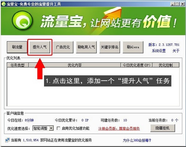 流量宝是一款高效的网站流量专业提升软件,知识兔用于快速提升网站/网页流量、Alexa排名、淘宝网店访问量、博客人气、每日访问IP,PV(访问量),UV(独立访客)等。流量宝是新一代网站主与网络营销人员的必备软件,拥有流量宝,流量不再愁!