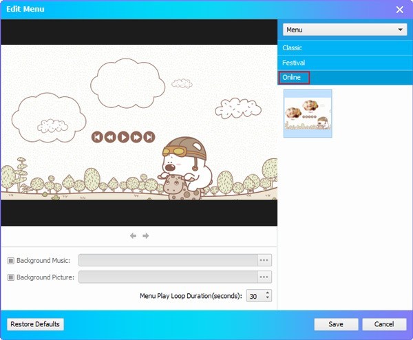 并选择蓝光菜单背景图片。
