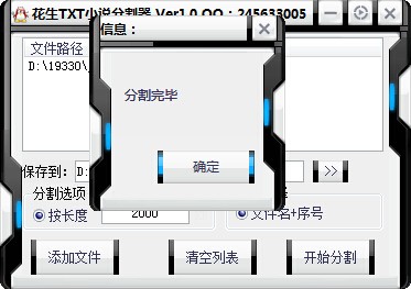 花生txt小说分割器支持100多本小说分割。
