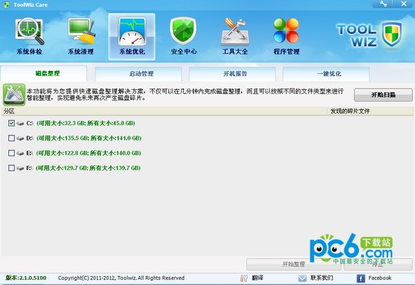 Toolwiz Care有六大功能区:
