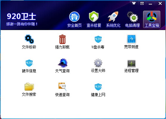920卫士是一个强大的安全防护工具。它支持多方面的系统优化,一键优化提升系统运行的效率,系统垃圾清理,知识兔让你的电脑随时处于安全、清洁状态。920卫士还有更多实用功能。