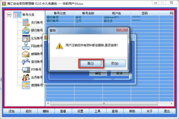 输入333333就可清除iiiuuu用户名下的帐户资料.