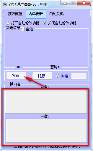 1、统一文本广播区:单次发一个统一文本广播,自动发统一文本广播。
