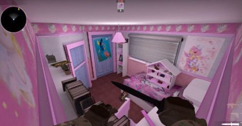 本章地图带领知识兔进入了一个巨大的粉红色卧室,我猜是个姑娘的房间,但粉红色的力量是没有性别差异的。就像rats那张图一样,巨大的家具分享了多重隐匿处,知识兔包括全是家具的娃娃屋,还有别人看不到你的管道通路,知识兔以及AWP使用者的天堂–主要卧室楼层。