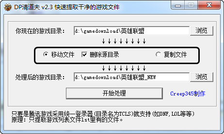 DP清道夫真正彻底删除多余的垃圾文件。提取出来的目录是最干净的游戏,只要是腾讯游戏采用统一登录器(目录名为TCLS)就支持(如DNF,LOL等等)
