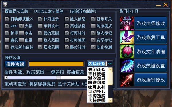 智能连招秒杀:本人的攻击范围,显示英雄技能冷却情况,英雄血量
