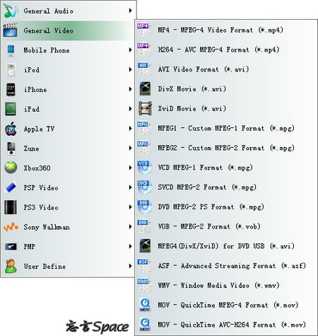 MP4 播放器, iPod, Apple TV, PSP, PS3, Zune,Xbox 360, Archos, Cellular Phone, Pocket PC, Palm等