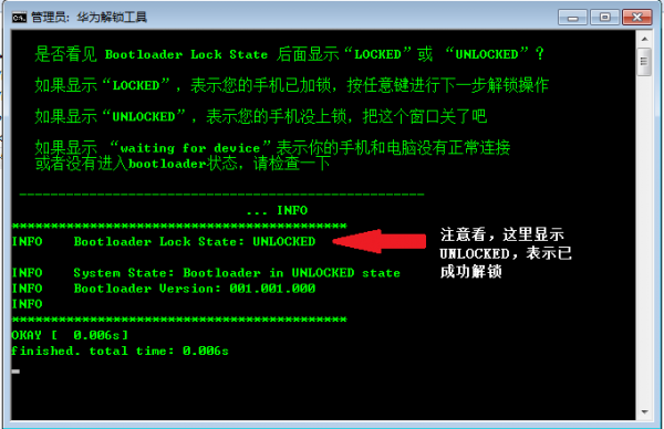 备注:在解锁成功后,用户如果知识兔希望将手机重新加锁,知识兔以使用google的Widevine功能,则需要进行如下操作:首先,通过SD卡升级方式,将手机版本重新恢复为华为官方发布版本;然后知识兔,进入fastboot模式,敲入命令fastboot oem lock ****************。手机将自动重启,然后知识兔将手机设置为“RELOCKED”状态。这样,就可以正常使用google Widevine功能了。