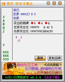 易步记牌器-无插件,完全绿色免费。本版去了广告。支持QQ里面斗地主,双扣,跑得快等所有牌类游戏。