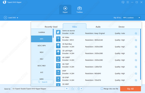 自由撕扯DVD到MP4,AVI,MOV,FLV,WMV,MKV,和更多以最快的速度