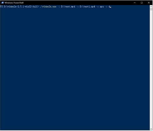 .\video2x.exe -i D:\test.mp4 -o D:\test1.mp4 -m gpu -r 4