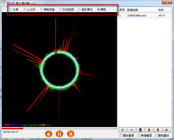 五种动态华丽频谱显示,知识兔支持多种音频格式,自定义播放列表,绿色不用安装,解压直接使用!