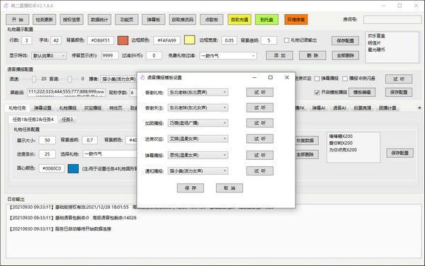 2.语音播报:礼物答谢、用户关注、加粉丝团、进直播间,评论弹幕五种数据的自动语音播报,可自定义语速、音调、播报人、频率等播报参数。