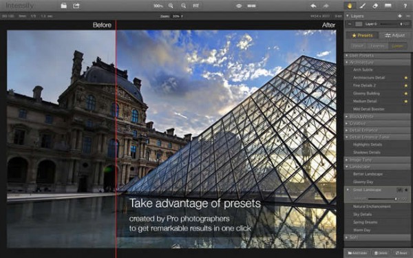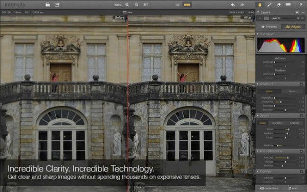 Intensify Pro for Mac的几个工具包含额外的功能。例如,获得了Dehalo的功能和结构微清晰度,增加了柔软功能。
