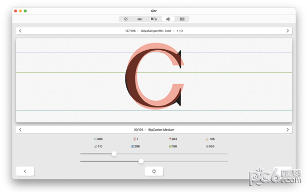 - 显示哪些字符在字体组中是可用的。非常有用,知识兔可以看到哪些特殊字符被其他通用字体所取代。