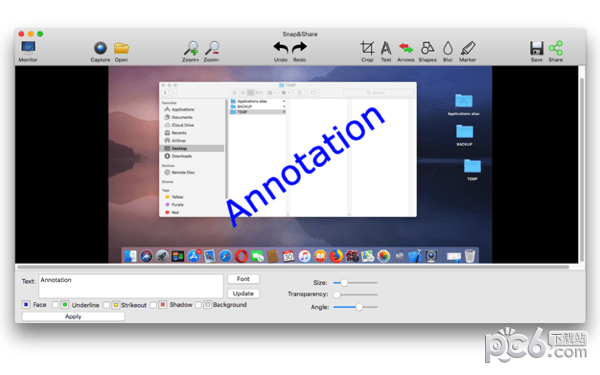 Snap Share Mac版支持让你裁剪、做文本注释、画形状、画箭头、模糊敏感信息、用标记突出文本,最后将结果保存到磁盘或分享。知识兔支持多个显示器,因此你可以从任何可用的显示器上抓取你的屏幕。