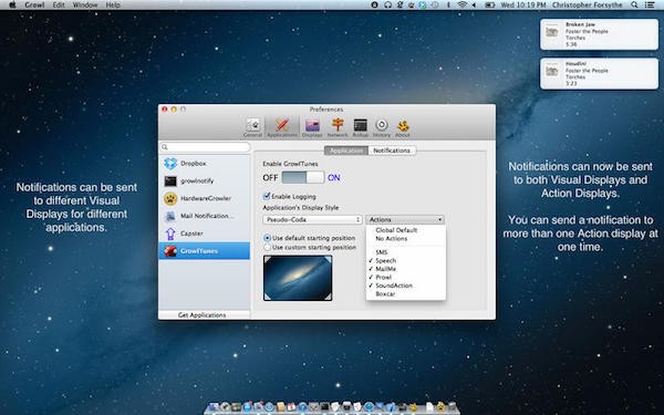 Growl Mac版是Mac os平台上的一款帮助用户提示各种实用的应用程序的运行提示。比如:好友上/下线、上传/下载完成、解压缩完毕、收到 邮件等等。用户可以设置提示的位置、外观以及 Growl 关联的软件等。