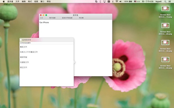 注:两台设备都需安装蓝牙通,同时打开连接蓝牙传输文件.