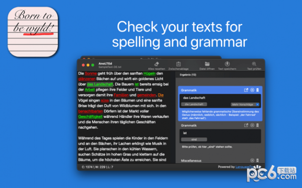 要检查一个文本,知识兔可以在集成编辑器中输入,知识兔也可以打开一个纯文本文件(TXT)。AnoLTEd还支持标记格式的文件,例如文件扩展名为 “MD “的MarkDown。
