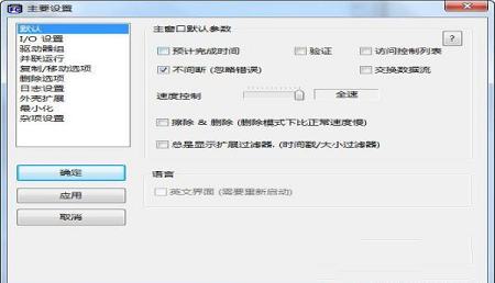 在“设置→常规设置”菜单中可以定义缓存的空间大小,它直接关系到复制时的速度快慢,现在机器配置都很强悍,这里设定值高些不成问题。相关的定义有I/O缓存设置、I/O设置、复制和删除、日志写入等项目。