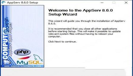 1、知识兔双击“appserv-win32-8.6.0.exe”开始安装;
