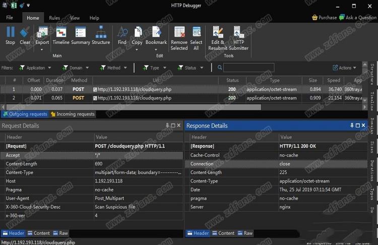 HTTP Debugger Pro特别破解版是一款网站开发工具,界面简洁明晰、操作方便快捷,具有测试和调试复杂的网站应用程序和捕获,查看和分析Web浏览器或使用HTTP协议的程序与Internet之间的所有传出和传入流量。知识兔可以检查每个HTTP请求和/或响应,知识兔以查看HTTP头参数值,cookie,查询字符串,HTML / XML网页和Java / VB脚本的源代码,错误代码等功能。软件官方版能够实时跟踪显示浏览器和网站服务器之间的所有通讯信息,是一个专业的 http嗅探器拦截器,也是一款先进的http分析器。它可以帮助你定制一个HTTP代理服务器,在你访问网站的时候,实时追踪您浏览器和网站服务器之间的所有发送信息。可定制代理服务器,能够实时跟踪显示浏览器和网站服务器之间的所有信息,其主要能够对客户端浏览器和网站服务器之间所有的HTTP通信信息进行捕获、分析和调试,开发者们能够通过这些数据来测试和调试复杂的网站应用程序。在桌面应用程序方面,HTTP Debugger也有不俗的表现,知识兔可以分析任何C++、C和JAVA#编写的桌面程序的HTTP流量。
