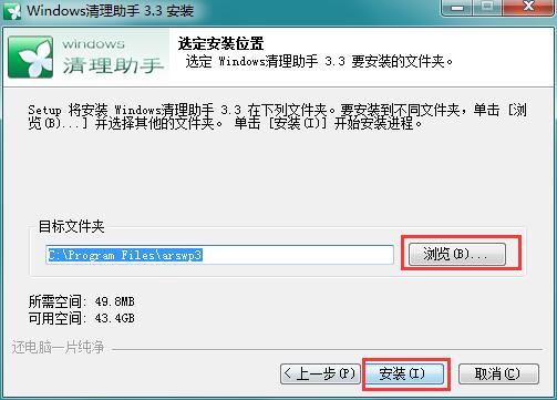 3、选定安装位置,默认的是C:\Program Files\arswp3,知识兔点击浏览选择其他的文件夹,单击安装开始安装进程