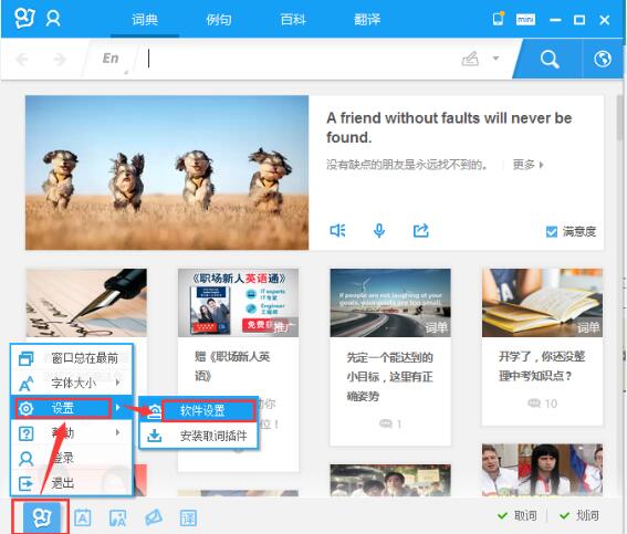 一、打开有道词典,知识兔点击左下角的图标,然后知识兔选择【设置】鈫挕救砑柚谩俊Ⅻ/p>