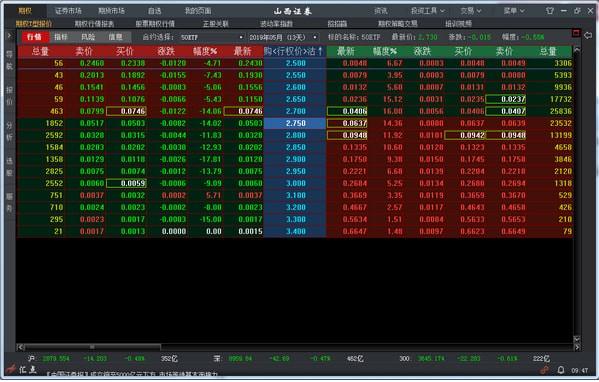 2、山西证券股票期权系统分享交易数据查看界面,这里是官方分享的行情界面
