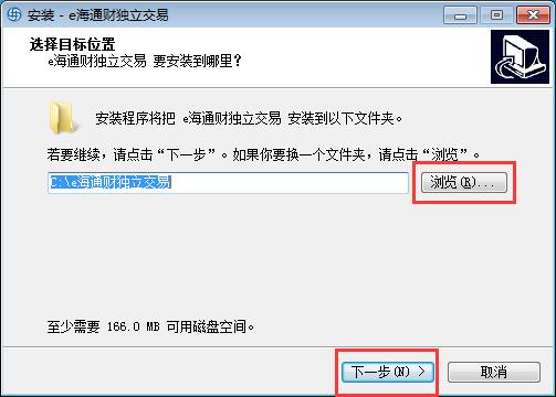 1.解压下载的软件,知识兔双击安装文件,出现目标位置选择界面,默认的是【C:\e海通财独立交易】,知识兔可以单击【浏览】修改