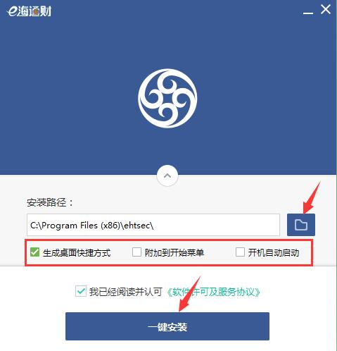 4、知识兔选择安装路径,默认的是C:\Program Files (x86)\ehtsec\,知识兔可以知识兔点击文件夹图标更换到其他位置,知识兔设置安装选项,知识兔点击【一键安装】,等待安装完成即可