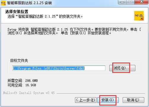 3.选择软件的安装位置,默认的是【C:\Program Files (x86)\Zhitu\Server\Ydkf】,单击【浏览】修改,然后知识兔单击【安装】开始安装进程