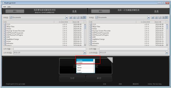 二、在加密的上方有个语言调整栏,用户可以在这里把语言调整成中文。