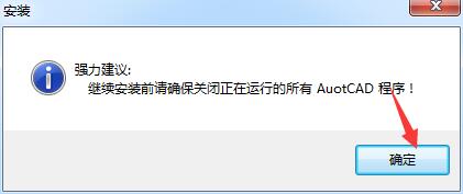 1.知识兔双击exe文件,弹出如图窗口,确保所有的AutoCAD关闭
