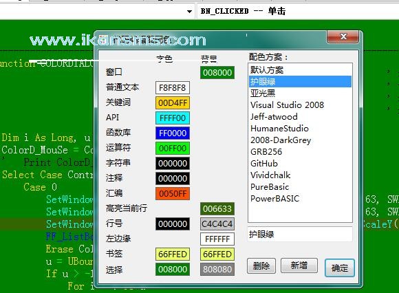 6、代码编辑器,一键换色,个性色彩自己做主。也可以自己创建属于自己的色彩,每个色彩都可以修改