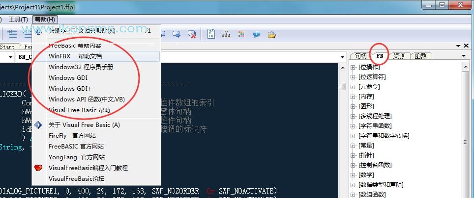 5.【函数库】里控件操作只是常用部分,完整版的打开帮助菜单里的【WinFBX帮助】看控件项。