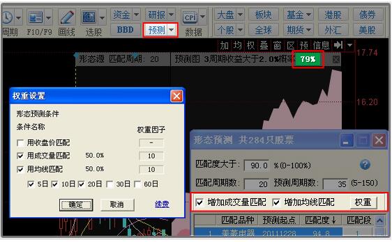 2、勾上”增加成交量匹配”及”均线匹配”选项。