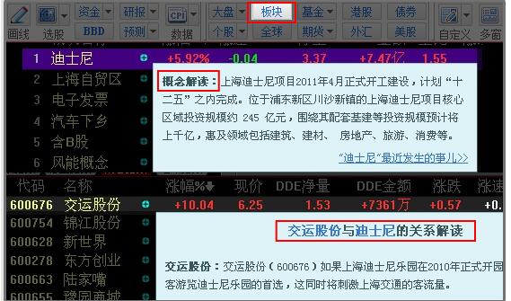 2、移至+号处查看概念解读及概念个股关系解析。